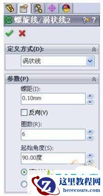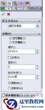3. 在右视基准面上绘制以原点为圆心直径为30mm的圆,以这个圆绘制螺旋线(菜单—插入—曲线—螺纹线/涡状线);