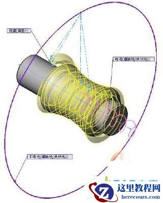 6. 点击扫描切除命令,选择“草图3”为轮廓,螺旋线为路径,添加涡状线为引导线,点击确定。