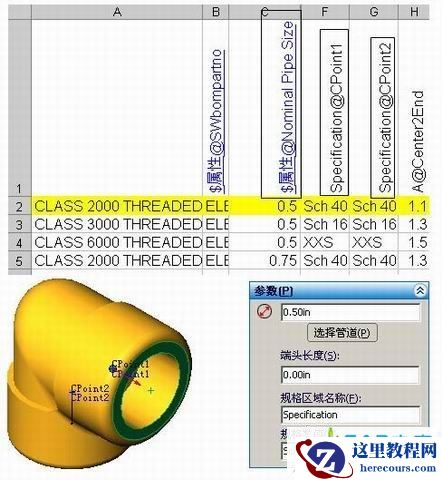 $属性@ Pipe Identifier :管道识别符,用于识别或筛选管道的规格;管道附件的连接点在管道附件的系列零件设计表中,也需要建立两个必备的参数: