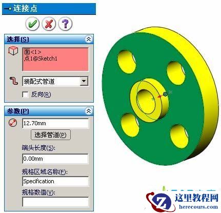 连接点是管路附件零件中的一个点。连接点定义了管道的起点或结束点,接头零件的每个端口必须有一个连接点。建立管道系统时,必须从现有装配体中零件上的一个连接点开始。