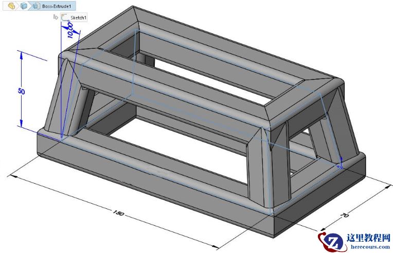 下图模型是通过带有拔模角的拉伸命令创建的。该实体模型的形状是我们焊接件所需的形状。