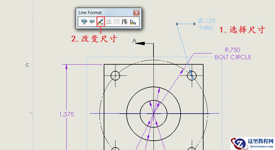 我们可以一次选择一个或多个尺寸/注释,然后从工具栏中选择“线色”
