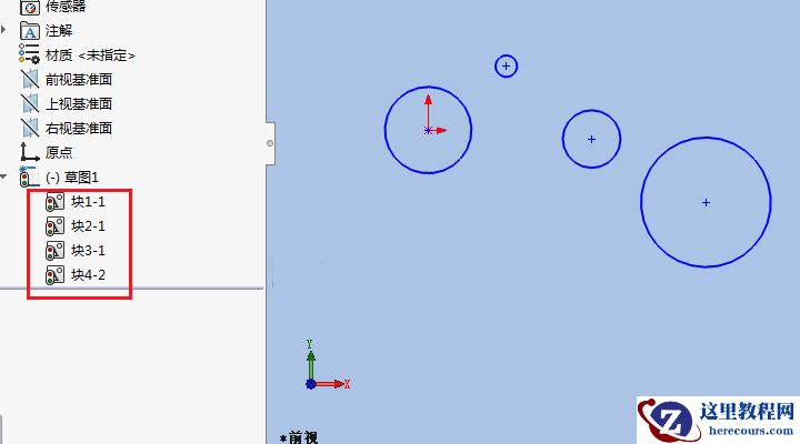 3.点击【块】-【制作块】,将四个圆分别制作成块并保存。