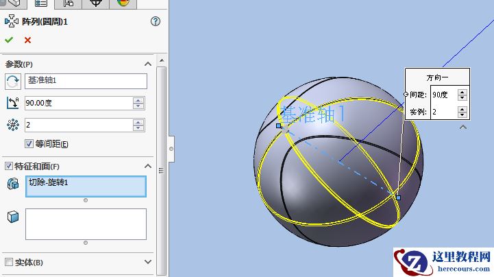 11.将旋转切除特征进行圆周阵列。