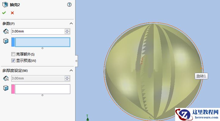 3.对球体进行抽壳。
