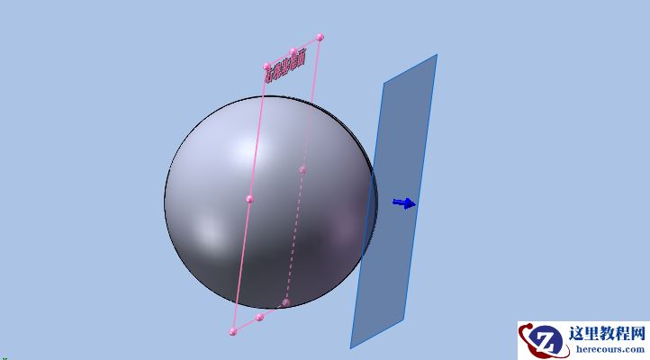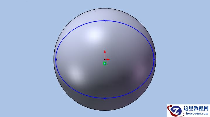 6.以平行FRONT平面,大于圆球半径的任意距离创建基准平面Plane2并在该平面上绘制一个略小于圆球体的椭圆轮廓,如下图所示。