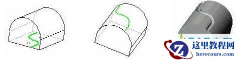 2) 是将图曲线设影到模型面上得到曲线(草图到面)。