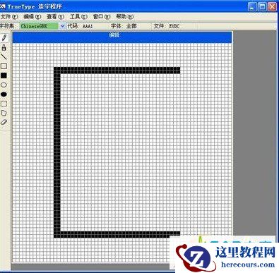 Windows的True Type造字过程非常的简单,在打开程序的时候,我们首先要进行代码选择,Windows中的每一个字或者字符都对应相应的代码。这里我们可以随意选择一个空白的代码进行设计,就进入了造字的过程,造字的使用过程和Windows的绘图板功能基本相似,可以自由修改。当然根据在使用中的经验,我们还是比较推荐使用这种方法进行各种符号的设计使用的。
