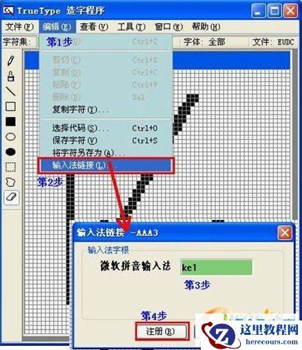 等设计完成我们需要的符号后,这时候符号就可以保存在Windows字体库中了,为了方便额进行输入及其使用,我们推荐的方法是将设计的符号链接到输入法上,给与相关的规则,这样我们在使用输入法就可以输入任何我们自己设计的符号,这里的输入法链接,仅仅支持Windows系统附带的输入法,例如微软拼音输入法,美式键盘等,这样就完成了一个符号的设计及其使用链接过程。