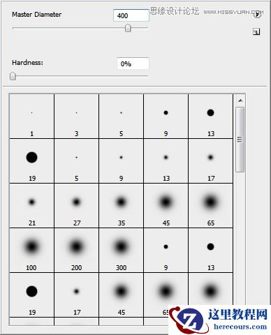 现在选择画笔工具(B),应用如下参数:不透明度30%,颜色代码#0499E6。