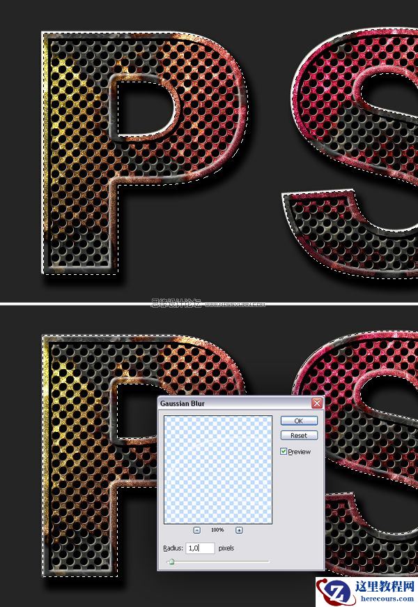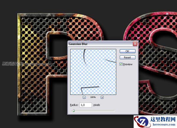 CTRL+D取消选择。执行滤镜〉模糊〉高斯模糊,应用1像素半径。