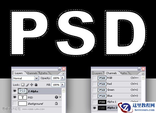 现在Ctrl+单击“2 Alpha“图层载入选区。然后Ctrl+ C 复制,进入通道面板建立新通道,点击Ctrl+ V粘贴。保持在通道面板,Ctrl+单击”Alpha 1“通道载入选区