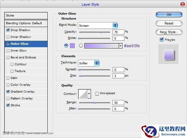 之后,在当前文本层应用下图的混合选项:?投影?外发光?渐变叠加?描边