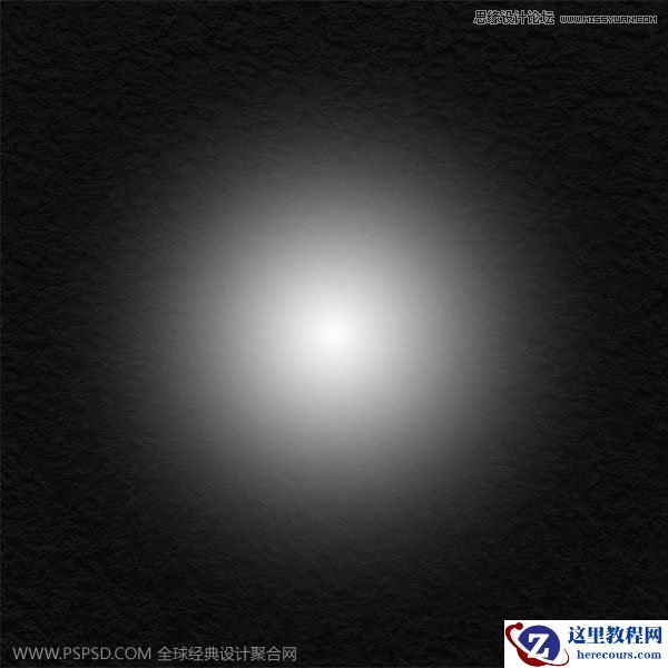 然后我们在到这上面新建一个图层,命名为“径向渐变”。然后使用渐变工具,中心颜色为白色#ffffff,四周为透明,位置透明度为50%,这样我们就有了个灯光效果。如图: