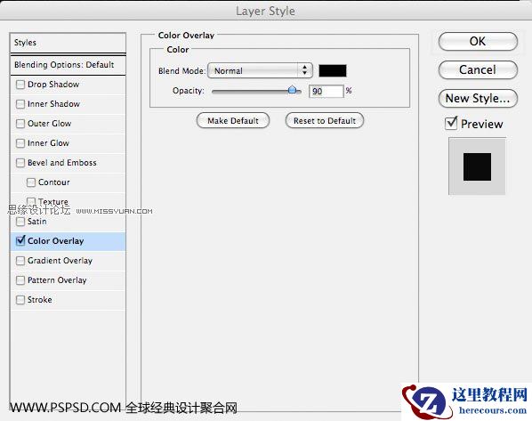 然后在“岩石图层”添加混合模式>颜色叠加,叠加的颜色为黑色#000000,然后不透明为90%。如下图: