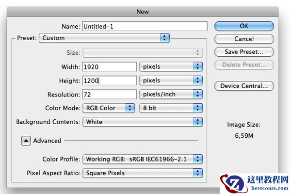 让我们先在Photoshop中创建一个新文件。 因为我想创建一个可以作为桌面墙纸使用的图形,所以我设置大小为1920 × 1200像素的,当然你可以设置你自己喜欢的大小。