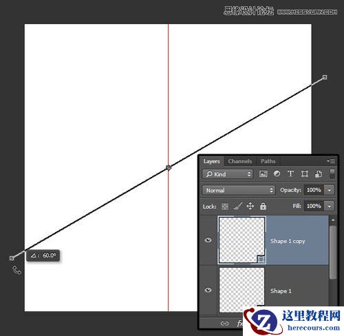 再复制垂直线图层,这次逆时针旋转直线60°。