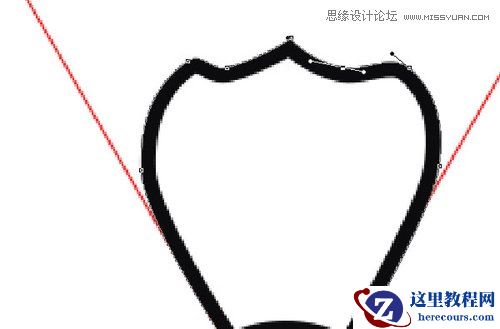 选择直接选择工具,然后将刚才增加的第二、第三个锚点往下移动,同时改变形状,设计出像锯齿状的花瓣边沿。