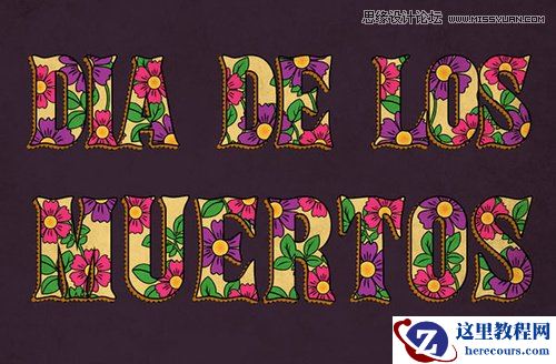 教程所需要的素材:复古风格的花朵艺术字PS教程素材