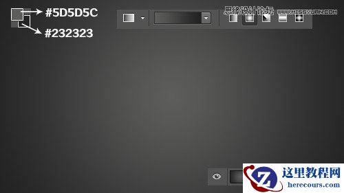 OK,下面我们开始。新建个文档,我用的尺寸是1920*1080像素,设置前景色为#5d5d5c,背景色为#232323,使用径向渐变做一个渐变背景。