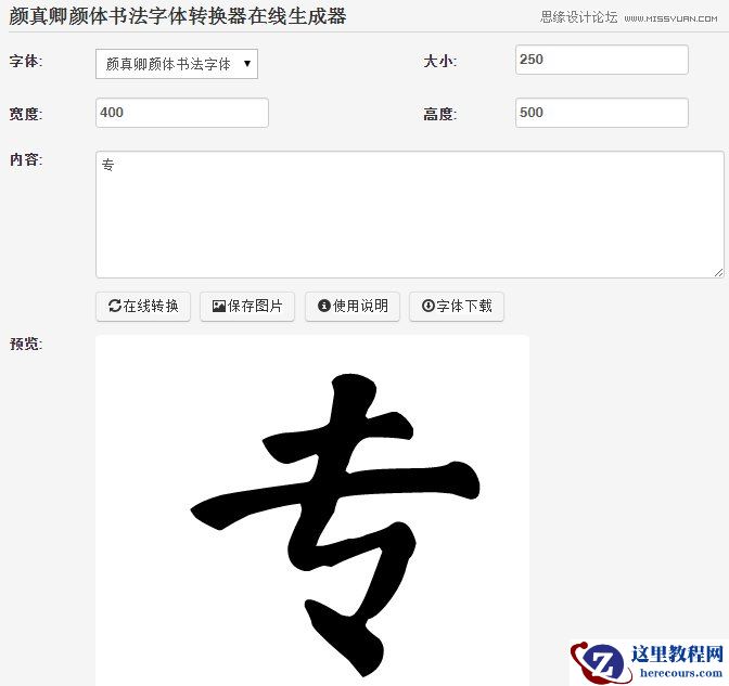 选择你喜欢的字体,当然我比较喜欢颜真卿的这款,足够的舒展,且有较强的可塑性。在内容区敲上你需要的文字,我一般一个字一个字做,因为预览显示面积有限,单个字可以做的更大。