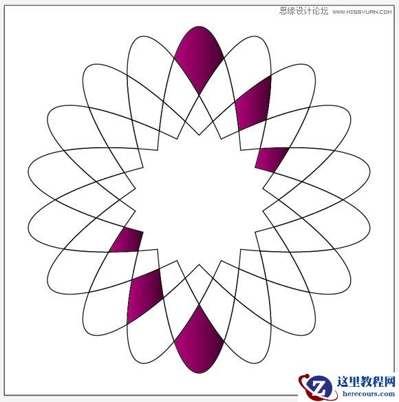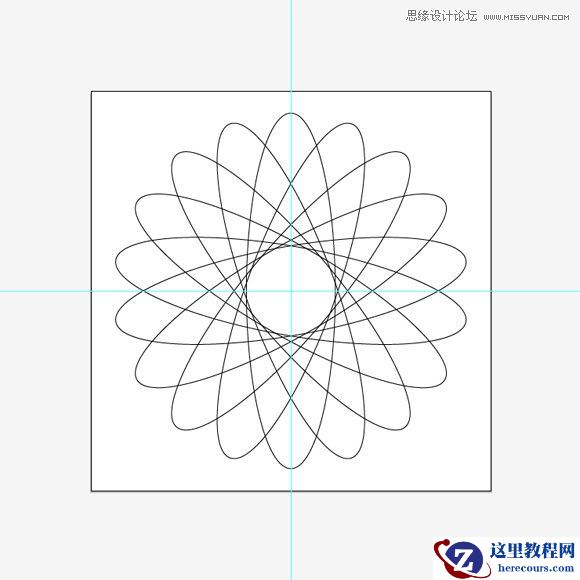 现在,我们要复制椭圆8次。最简单的方法是使用旋转工具(R)。选择椭圆工具(R),按住ALT点击椭圆中心,对话框将会出现。输入角度为20,点击复制按钮。你将得到下图: