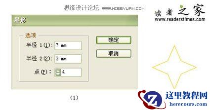 1、单击工具箱中的“星形工具”按钮,在页面中单击鼠标左键,弹出“星形”对话框,其参数设置如图(1)