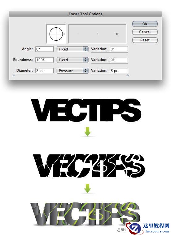 橡皮擦工具的选项也可以使用与书法画笔选项一样。你可以创建一些线条和效果作为书法画笔,但是反过来也可以。我也一直在用橡皮擦工具尝试,它可以训练你以不同的角度看待插画的元素。以下是简单示例。