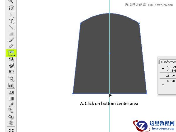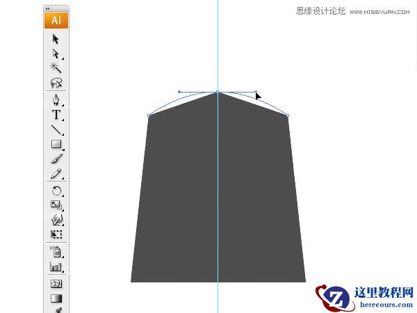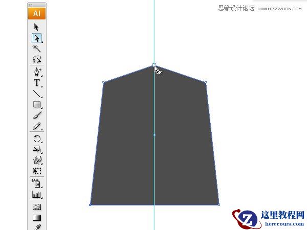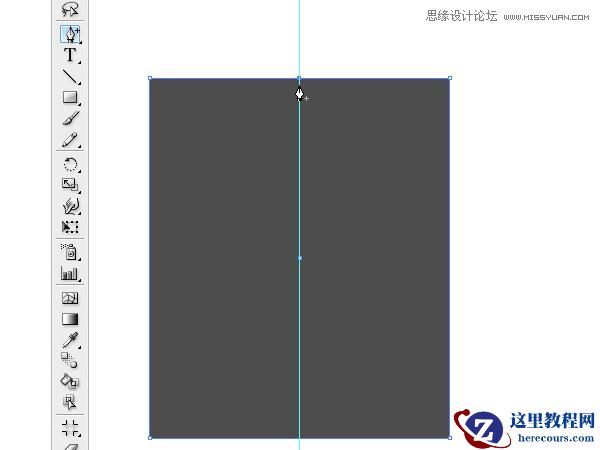 2.建立一条垂直参考线,用钢笔工具中的添加锚点工具在矩形的中间增加一个锚点。