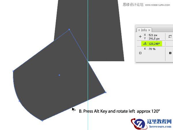 考虑到这三个点的对象,要把360°分成三份,我们必须旋转120°,效果如下图所示。