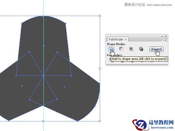 8.我们将这些对象整合成一个。在路径查找工具里,点击“联集”也就是第一个,然后点击扩展,将它们转变为一个整体。
