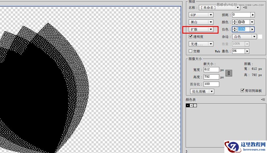 一个GIF图片也可以是黑白的,在这里可以选择了黑白后再选择扩散来让颜色过渡得更自然。你可以通过调试仿色的滑块来选择不同的扩散效果。但图片整体的效果绝对是60年代的LOOK!
