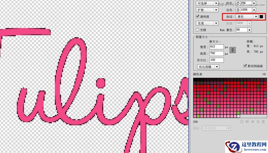 紧靠勾选透明度选项右侧的,是一个叫做“杂边”的色彩选择参数。这会围绕图片里所编辑的对象增加一条细边,有点类似PS中的描边。如果你要将这个GIF图片置于一个有色的背景中,那么你可以在此选择与背景相同颜色的杂边。这会让图片和背景融合得更加自然。