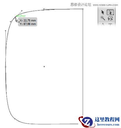 选择左上角,然后把它拖使用钢笔工具,将它转换为一个圆角。