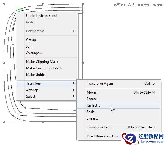 在AI里选择我们所有的形状,然后单击>变换>反射
