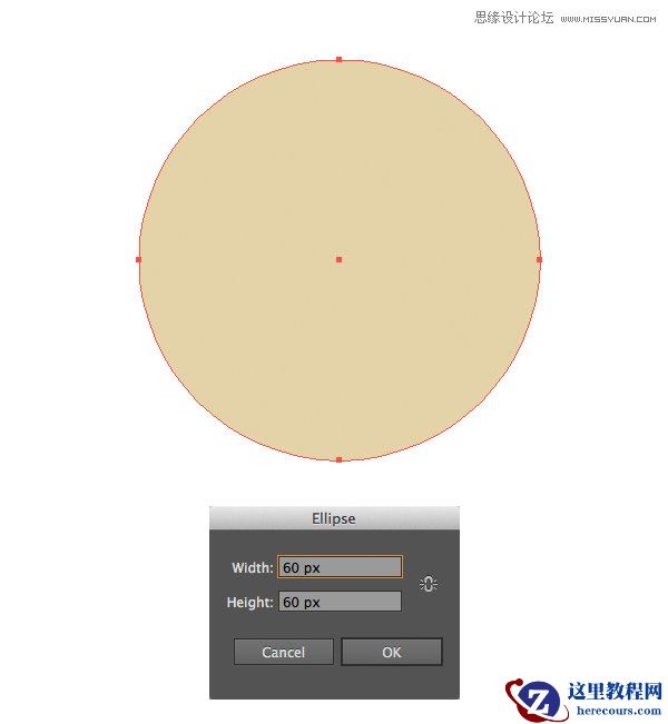 首先从一个由椭圆工具(L)制作的60*60 px大小的圆形成猫的脸。 用浅褐色填充这个圆。