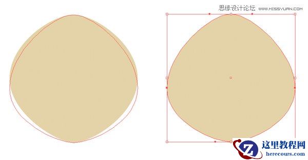给这个形状应用对象>扩展外观的效果。 用直接选择工具(A)选择上面的锚点,并在上面的属性面板中点击转换角为平滑按钮,制作平滑的角。