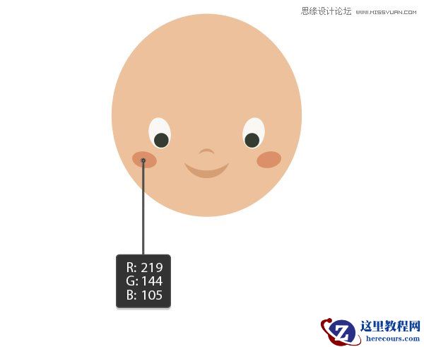 画一个椭圆作为红红的脸蛋。 将它相应旋转一点,然后制作这个左边脸颊的对称创建出右边脸颊。