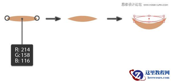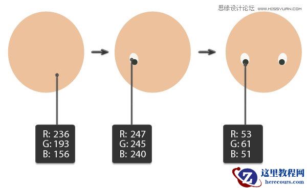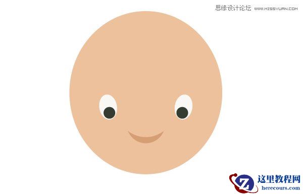 我们首先从头部开始。 利用椭圆工具(L),首先画一个椭圆并用下图所示的颜色填充。 然后画一个小椭圆作为眼睛,并向左旋转一点点。 现在,画一个小圆作为眼眸。
