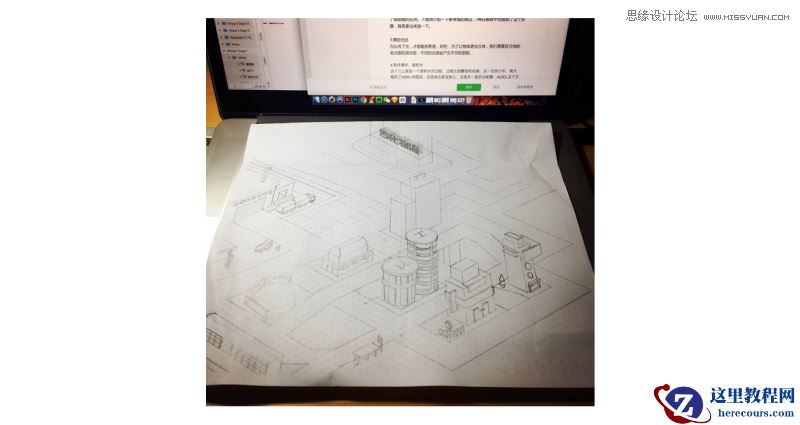 这里用到了众所周知的轴测图画法,当然这个画法的起源要追溯到很久远了,http://www.ituring.com.cn/article/788 大家可以看看这里,非常详细的解释了轴测图的应用。下面再介绍一下参考线的画法,R神在教程中也提到了这个步骤,我再拿出来放一下。