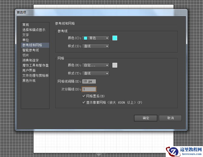 4. 设置网格线间隔为10px,次分隔线为1。