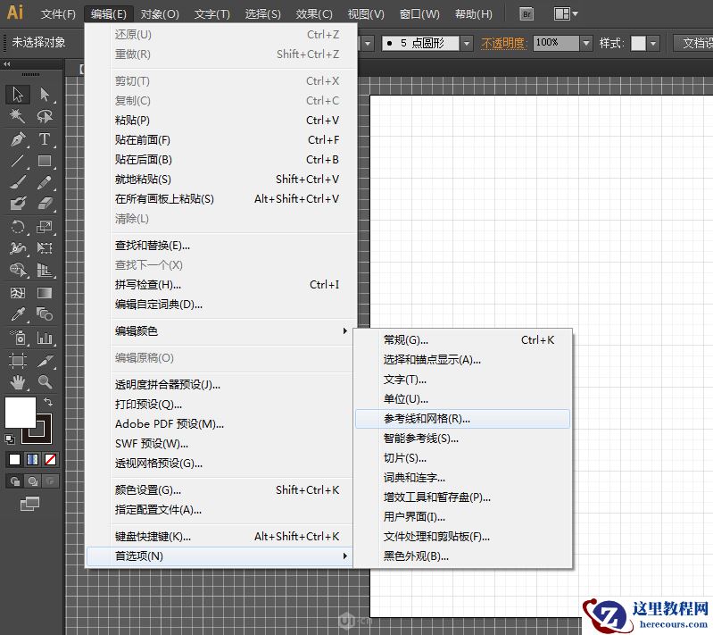 3. 执行"编辑>首选项>参考线和网格>"。