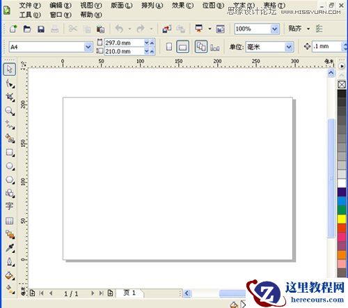 1、打开CorelDRAW X3软件,执行菜单:“文件”/“新建”(快捷键Ctrl+N),新建一个文件,设置纸张类型大小为:A4,纸张方向为:横向,如图1所示。