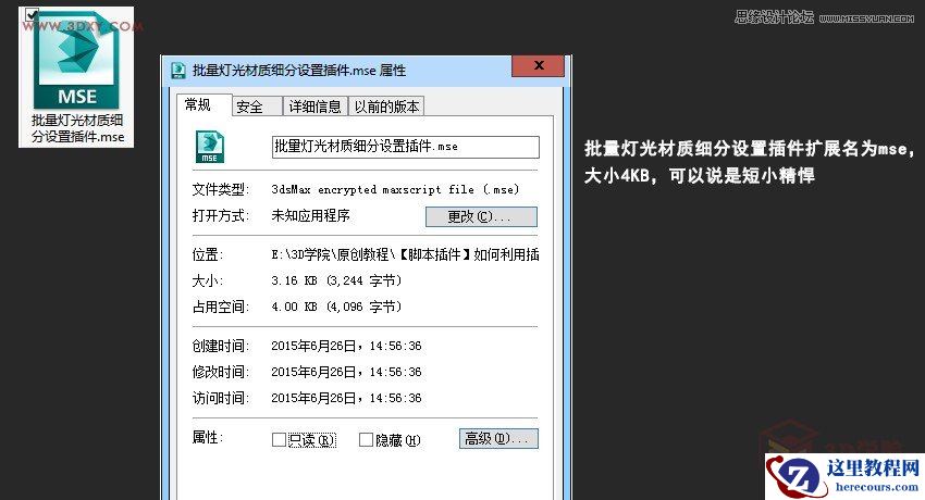 首先,需要下载一个材质灯光细分插件。批量灯光材质细分设置插件扩展名为mse,大小4KB,可以说是短小精悍。