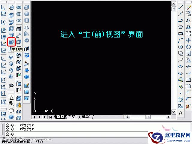 1、打开CAD,点击“主视图”按钮,进入主视图二维界面,平常,主视图大都称为“前视图”。