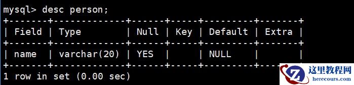 person是表的名字;name是表的列名;varchar是数据类型;20是数据大小;
